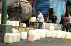 在北京一家糧油批發市場,商販往桶中灌油,這種桶裝散油正是地溝油流向餐桌的主要途徑之一。新華社發