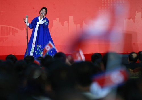 朝鮮主體思想塔受追捧 演員獻唱《紅旗飄飄》